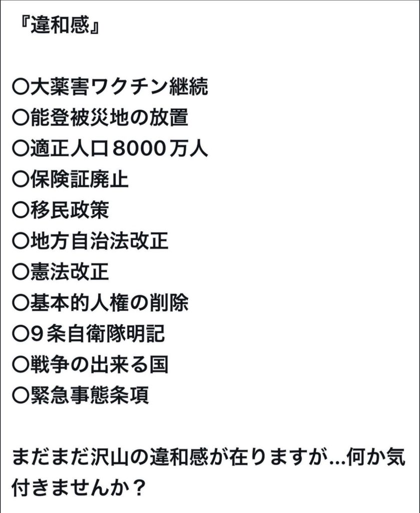 「子どもを守る」「健康を守る」「国を守る」――こうした耳障りのいい言葉で大衆を導きながら、日本ファースト!だがしかし、その先に待っているのは人権の制限と国家による統制社会です。