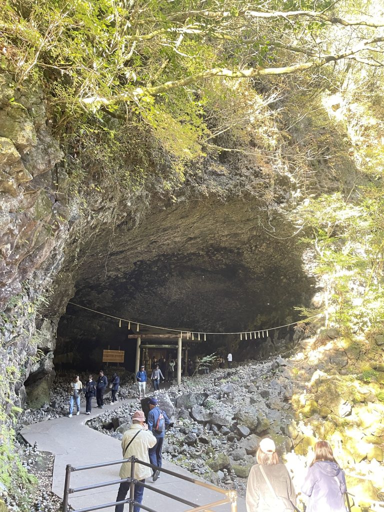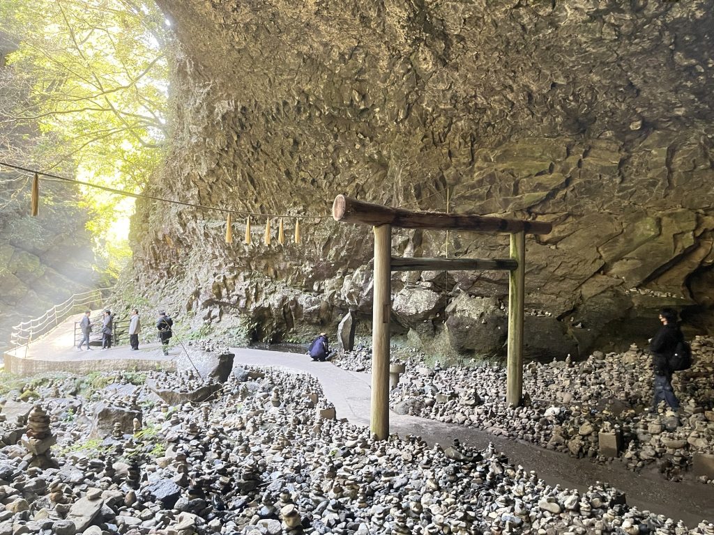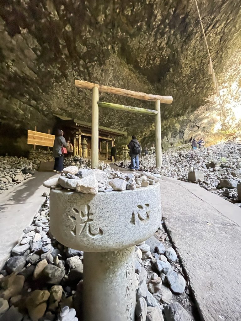 神社に到着したら、巨大な岩の窟に、鳥居が静かに立っていて、