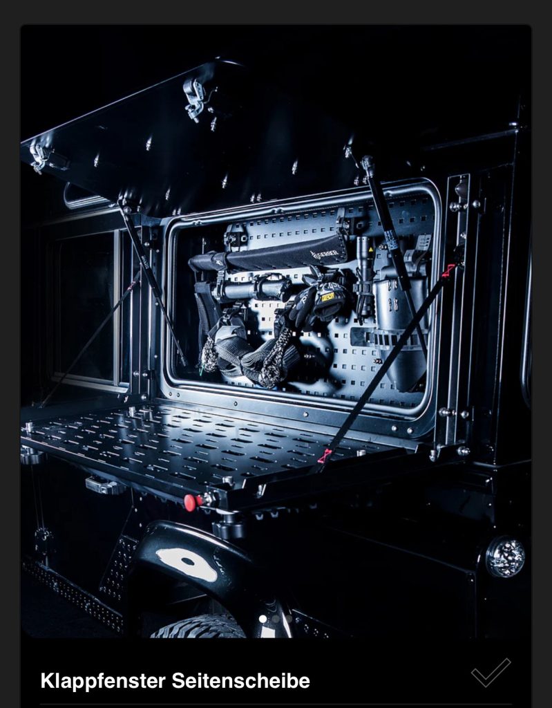 黒いディフェンダーの中で、何かを作ろうとしている。