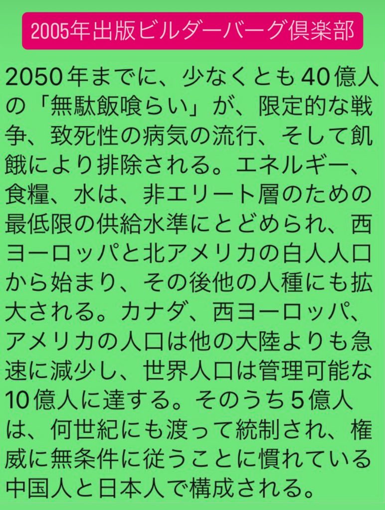 彼らが何の目的でこんな事をしているのかご存知ですか?それは世界をワンワールドに支配する為です。その為には世界の人口をコントロールできる数まで削減する計画が実行されました。世界の人口は10億人になるまで人口削減真っ最中だというやばい話しです。信じるか信じないかはあなた次第!って、エンタメ的にはもう笑えない状況です。